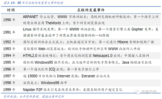 互联网从学术网络走向商业网络,资本助推互联网爆发。商业化意味大量资金的涌入,意味着竞争与淘汰,商业化推动了整个互联网行业的变革。期间互联网公司涌现,新成立以及新上市的互联网公司数量逐年增多,网站数量增倍时间由过去的一年缩短到3个月。各个公司在不断满足和创造互联网用户的需求,竞争促使着它们持续完善公司的作品,迎合资本的需求。1994年,互联网商业化浪潮最具标志性的Netscape(网景) 诞生,同年,微软为Windows 95创建了一个Web浏览器,浏览器市场激烈竞争随着两大企业产品的推出而精彩上演。不仅是浏览器市场,多个产品市场的竞争在轮番上演。此外,互联网用户数量的快速膨胀带来了市场的快速扩大,更多的资本继续涌入,1999年,全美70%以上的风险投资涌入互联网,1999年美国投向网络的资金达1000多亿美元,超过以往15年的总和。