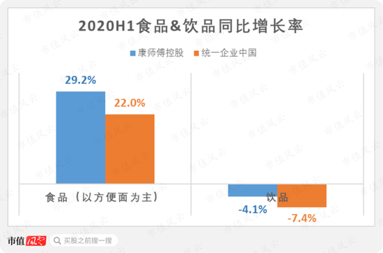 两家公司的方便面收入均在2020年上半年得到明显增长,但饮品收入均出现下滑。
