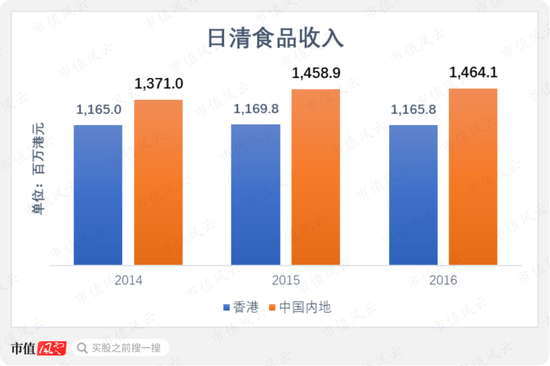 以2016年为例,冷冻食品业务的收入为2.85亿港元,其中2.5亿港元来自香港市场。中国内地的冷冻食品收入仅为3750万元,仅占该公司当期总收入的1.4%。