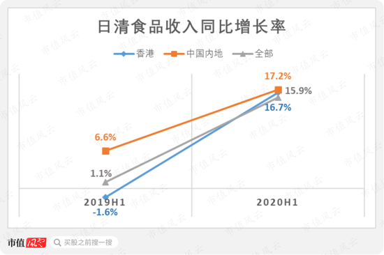 日清食品来自中国内地、香港的收入均在2020年上半年明显增长。
