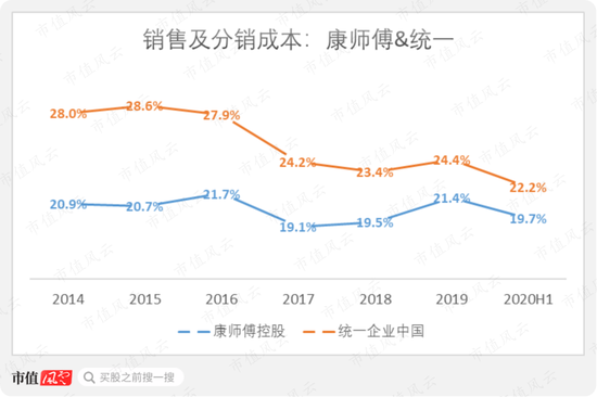 另外,上文提到,康师傅控股的销售及分销成本长期以来低于统一企业中国。