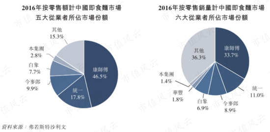 另外,需注意的是,日清食品方便面收入占比高达九成;而康师傅控股和统一企业中国的最主要收入来自饮品,方便面收入占比不足五成。