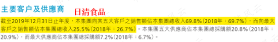 2019年,日清食品前五大客户的销售额占其总收入的69.8%,其中最大客户的销售额占其总收入的25.5%。