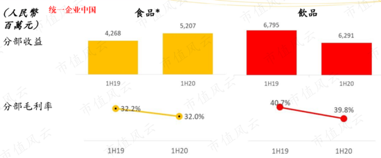 统一企业中国的食品毛利率也明显低于饮品毛利率。2020年上半年,食品毛利率为32.0%,较同期的饮品毛利率39.8%低7.8个百分点。