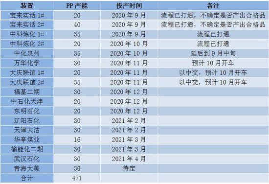 从19年以来,大炼化投产使得各工业品价格下移。PP在大投产的背景下,整体趋势跟随原油走弱。目前PP已经进入产能快速扩张周期,从上年中至本年5月,PP新增产能达到350万吨,而在从今年9月至明年5月,PP待投产能还有约470万吨,远期大量产能供应给予市场远期深贴水估值。
