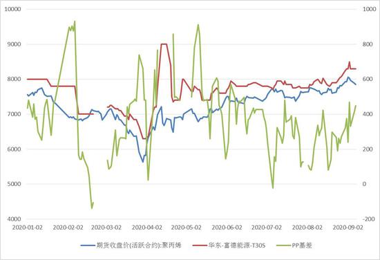 新增产能对市场影响的预期,从年初起一直存在,这使得8月PP主力合约换月后,基差一度冲至400以上。但是随着现货价格的坚挺,以及两油库存维持低位,市场对于新增产能对现货市场的影响产生重新评估。