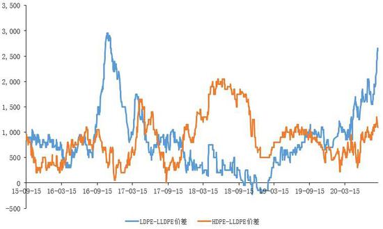 PE中的农膜具有明显的淡旺季,目前农膜开工率逐步攀升,向旺季过渡,也是有着“金九银十”,目前中秋国庆假期临近,消费旺季将刺激包装膜的需求。目前,下游塑编、BOPP膜、农膜价格已经开始上涨,部分厂家因交货周期长而采取限量接单。近期LDPE供需向好明显,由于伊朗受制裁以及国内LDPE装置检修,LDPE供应紧张,下游需求棚膜及包装膜需求逐步步入旺季,价格涨幅较大,LDPE-LLDPE价差已经高达2600元/吨。
