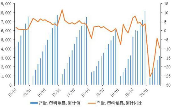 2020年1-7月份我国塑料制品累计产量为3976.5万吨,同比减少15.7%,相较1-6的9.6%的同比减幅继续扩大,主要是受疫情带来的需求减少,另外,1月19日,国家发改委下发了新版禁塑令,将限制一些塑料制品的使用,尤其是一些厚度较小的塑料袋和塑料膜。7月17日,发改委等多部门联合发布《关于扎实推进塑料污染治理工作的通知》。其中提出依法查处生产、销售厚度小于0.025毫米的超薄塑料购物袋和厚度小于0.01毫米的聚乙烯农用地膜等行为;对纳入淘汰类产品目录的一次性发泡塑料餐具、一次性塑料棉签、含塑料微珠日化产品等开展执法工作。目前一些餐饮、快递企业已经开始更换环保的吸管、包装等。另外,欧盟将在2021年1月1日起对一次性塑料包装按每公斤0.8欧元的税率征税。这将抑制未来塑料制品的消费。