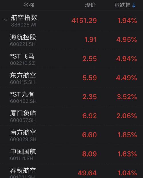 受益于人民币升值,航空板块今日表现抢眼,Wind航空指数上涨1.94%,板块内海航控股、东方航空涨逾4%,南方航空、中国国航涨逾1%。