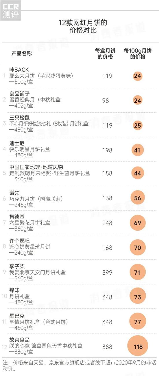 2020年9月,《消费者报道》对比测评了12款网红月饼。