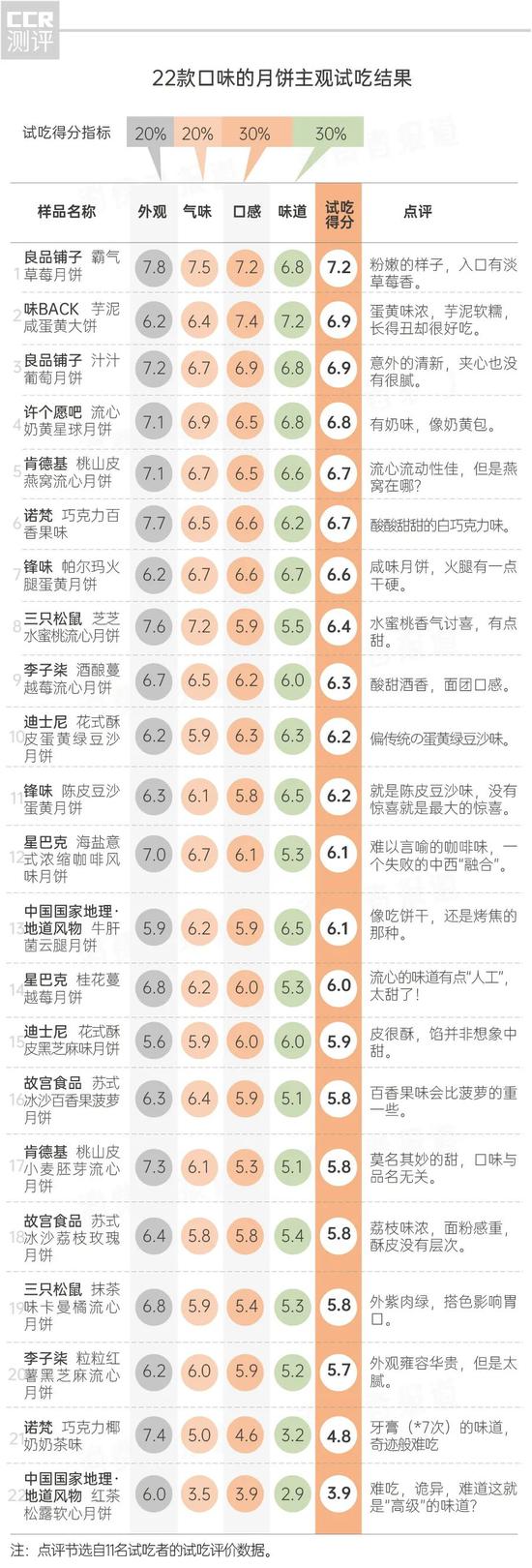 遗憾的是,李子柒粒粒红薯黑芝麻流心月饼、诺梵巧克力椰奶奶茶味、中国国家地理·地道风物红茶松露软心月饼排名靠后。