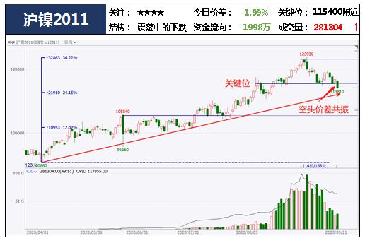 黑色系大幅走弱拖累镍价下挫,不锈钢累库、利润下降,导致镍铁转向过剩,镍矿港口累库也弱化其基本面,不过11月份菲律宾雨季来临或带来下方支撑。盘面看,沪镍达到空头价差共振,关键位下方可试空。
