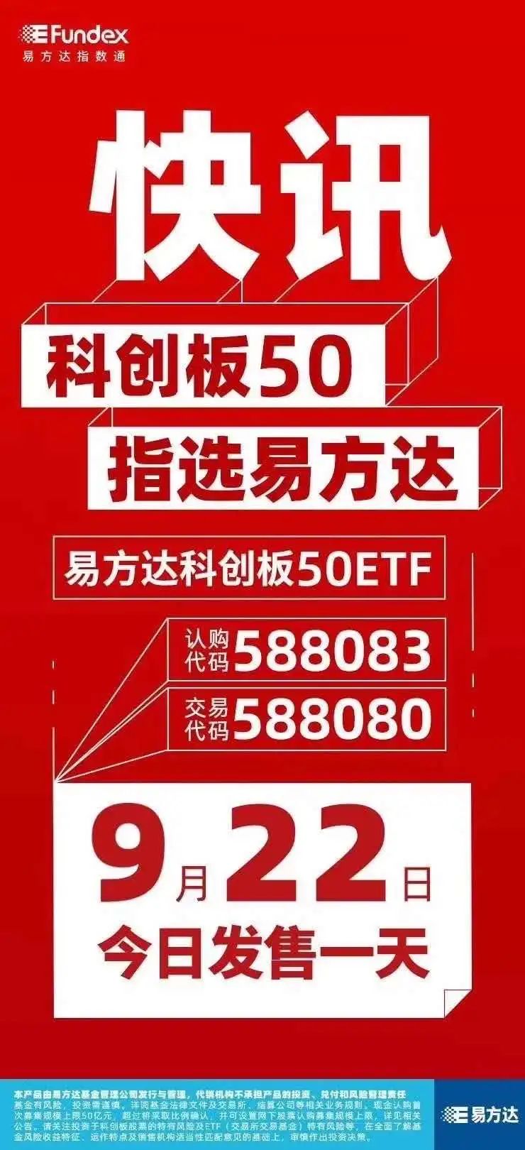 9月22日,首批4只科创50ETF同时开售,新基金销售“捷报频传”: