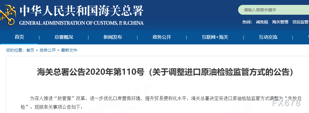 中国海关周二发布公告,调整进口原油检验监管方式,决定将进口原油检验监管方式调整为“先放后检”。