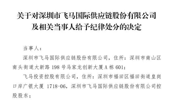 今日,*ST飞马发布公告,公司收到深交所《关于对深圳市飞马国际供应链股份有限公司及相关当事人给予纪律处分的决定》。