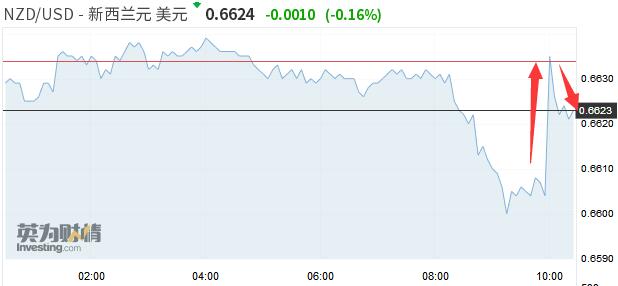 在利率决议公布后,纽元兑美元短线剧烈震荡,一度上蹿下跳。纽元兑美元盘中先是拉升近50点,最高触及0.6647,但随后又掉头回落,最新交投于0.6620一线。