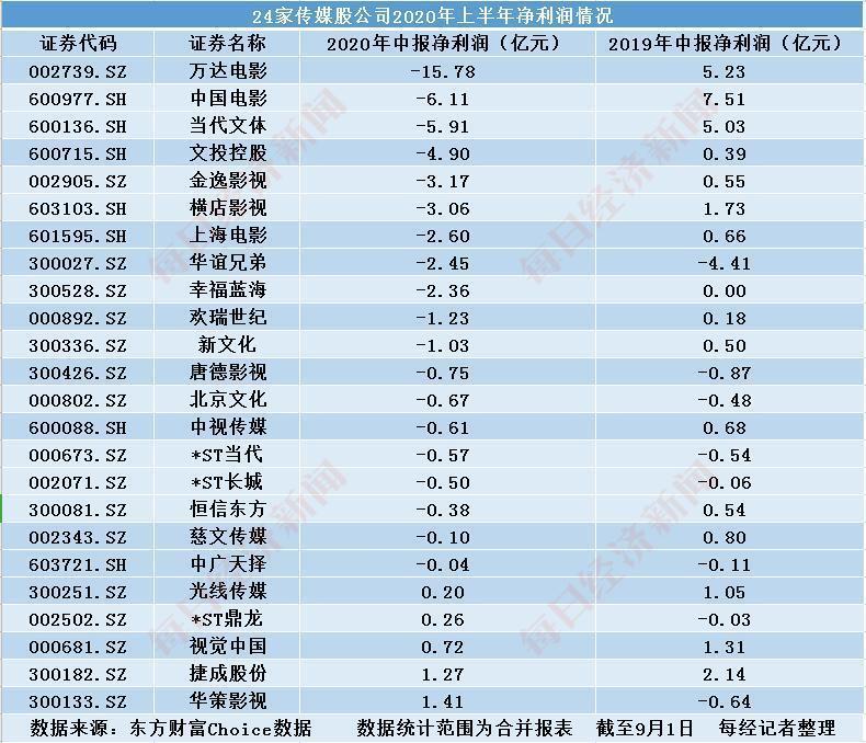 据每经记者不完全统计,在发布2020年半年报的24家传媒上市公司中,绝大部分上市公司无论营收、净利,相比上年同期均明显下降。