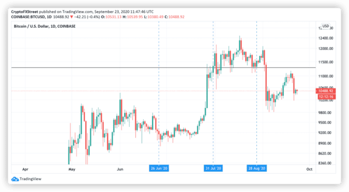 基本上,这意味着一些交易员忽略了9月份对比特币不利的拇指法则,押注价格将进一步上涨。这种乐观情绪可能是受到9月19日比特币突破11,000美元的鼓舞。