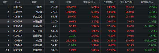 从个股来看,主力资金最青睐的3只股票分别是N铜牛、N品渥、拱东医疗,流入金额分别为5.21亿元、5.13亿元、3.80亿元,所对应的涨幅分别为465.22%、188.93%、10.00%。