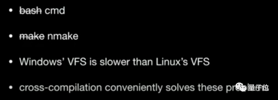 如下图,Swift移植到Windows上,需要面临许多问题,包括Windows的VFS会比Linux更慢,bash转变成cmd等等。
