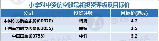 该行指出,综合考虑冬季非高峰期、息率表现有助股价等因素后,预期行业前景好坏参半,首选中国东方航空股份(00670),给予“增持”评级,目标价为4.2港元;予中国南方航空股份(01055)“减持”评级,目标价3.5港元;予以中国国航(00753)“中性”评级,目标价5.2港元。