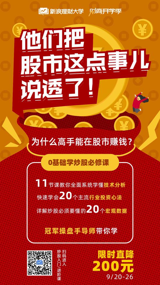 现在新浪理财大学【财商开学季】开始了!11节课、20个主流行业投资心法,他们就把股市这点事儿说透了!