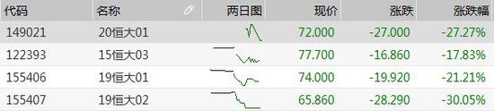 信用债方面,恒大地产集团存续债收盘大跌,“19恒大02”跌逾30%盘中两次临停;“20恒大01”跌超27%,“19恒大01”跌逾21%,15恒大03”跌逾17%。此外富力地产存续债成交活跃,出现不同程度下跌,“16富力01”、“16富力03”和“18富力10”均跌逾3%。