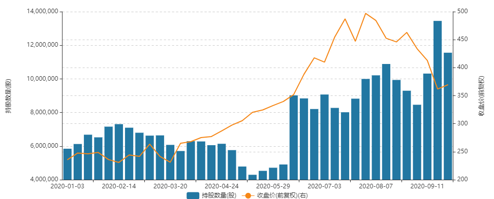 图3:北上资金持有长春高新的股份数量与其市场表现