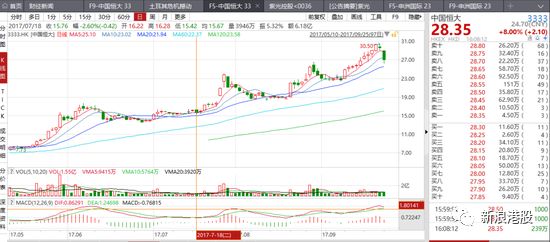接连巨资回购之下,恒大股价一路飙升,到 2017年10月,股价高见32港元,恒大在2017年更是暴涨4.7倍,许家印当时还直接登顶了亚洲首富。