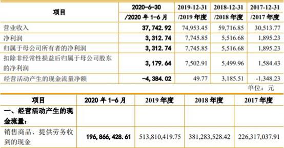 过去八年一期,震裕科技的经营现金流有七年一期不敌净利润。2012年至2020年1-6月,震裕科技的经营活动产生的现金流量净额分别为2299.28万元、1278.18万元、2535.94万元、718.77万元、1807.02万元、-1348.23万元、3185.51万元、49.77万元、-4384.02万元。