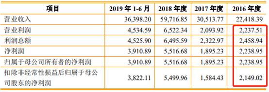 震裕科技2019年11月29日报送的招股书显示,2016年,公司的营业利润为2237.51万元,利润总额为2458.94万元,归属于母公司所有者的净利润为2238.95万元,扣除非经常性损益后归属于母公司股东的净利润为2149.02万元。