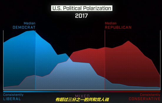 纪录片截图:2017年民主党和共和党的政治分歧达到了20年来最高点。