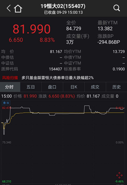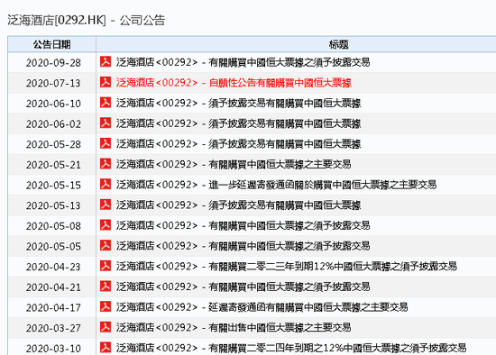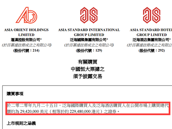 9月28日晚间,泛海酒店公告称,9月25日,泛海国际购买人及泛海酒店购买人在公开市场上购买总代价约为2942万美元(相等于约 2.29亿港元)恒大债券。