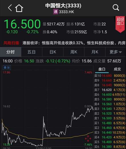 今天,中国恒大从一度暴跌超7%,随后反弹,收跌0.72%。