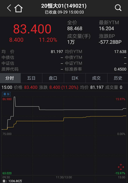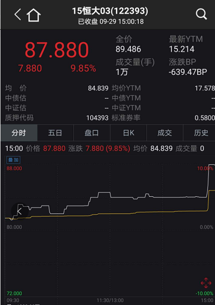 9月29日,在继28日反弹后,恒大债券连续第二日反弹!恒大债“20恒大01”收盘涨逾11%,“15恒大03”涨近10%,“19恒大02”涨逾8%,“19恒大01”涨逾6%。