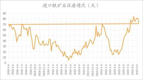 受前期港口集中到港叠加目前港口疏港不畅的影响,铁矿石45港库存进而继续累库。并且从压港情况上看,目前上周铁矿石维持在71天的压港情况,在目前的港口集中度下,预计仍需时日来消化港口堆积的铁矿石。