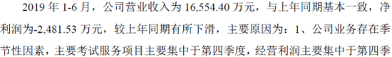 此外,从绝对数额来看,ATA公司不仅在2018年出现了净利润的同比下滑,更是在2019年上半年出现了净亏损。对于2019年上半年的净亏损,ATA公司将其归因于“季节性因素”。
