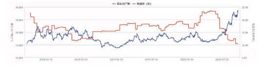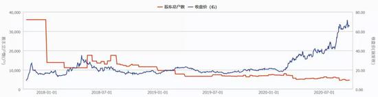 以探路者为例,探路者股东户数在2018年9月底达到47395户,为近三年最高数值,之后持续下降。2018年9月30日~2020年9月10日,探路者共披露了54期股东户数情况,整体均呈现逐期下降,今年9月10日,探路者股东户数降至28478户,降幅约为4成。随着股东户数下降,机构持股比例,整体也在2018年末的4.5%进一步上升至2020年二季度末的11.4%。巧合的是,探路者在2018年10月、筹码持续集中以来,股价也出现了同步上涨。今年7月以来,大盘持续分化调整,探路者逆市上涨了70%。(见图1)