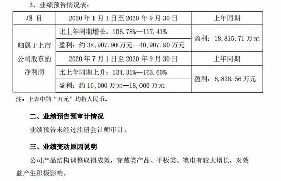 有券商研报认为,公司上半年受益于“双调整”策略,并组织生产抗疫物资,非手机业务营收占比超过50%,提升了抵御市场风险的能力和盈利能力,也展现出公司灵活的管理机制。“公司三季度业绩预测维持高速增长,我们认为随着公司业务结构调整,业绩拐点已经到来。”
