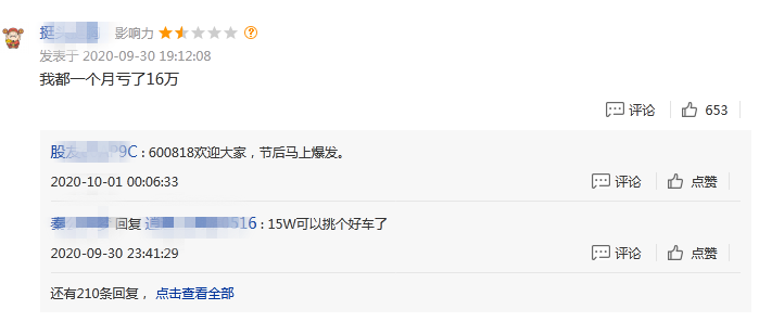 有股民表示,9月一个月就亏了16万。有网友评论,15万都可以挑个好车了。