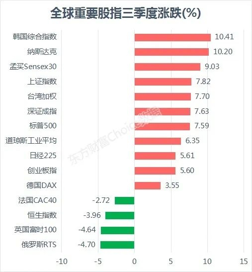 与海外市场相比,由于疫情最早得到控制,二季度以来经济回升明显,三季度A股表现好于海外其他市场。