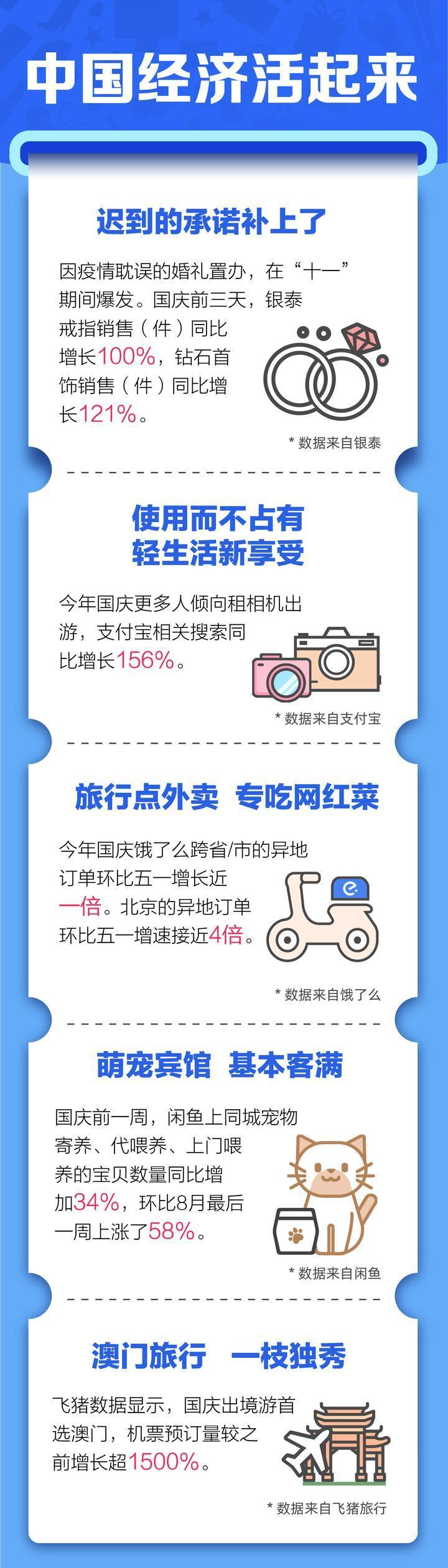 10月6日,《阿里巴巴2020“十一”假期消费出行趋势报告》发布。报告显示,疫情后的第一个大长假呈现三大趋势:团圆成主题,家人聚起来;出游高涨,大家动起来;消费情绪旺盛,中国经济活起来。2020年已经过去大半,人们终于迎来了第一个“像样”的长假。
