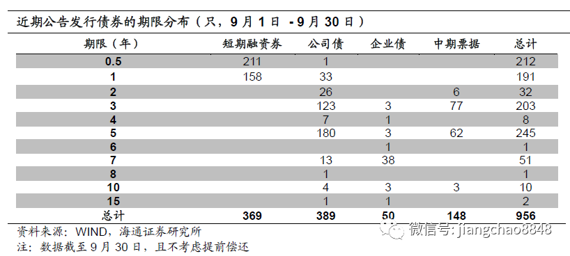 根据Wind统计,9月(截至9月30日)短融发行3605.7亿元,到期5048.69亿元,中票发行1363.6亿元,到期1694.71亿元;企业债发行572.5亿元,到期444.84亿元;公司债发行3705.96亿元,到期1362.77亿元。上月主要信用债品种共发行9247.76亿元,到期8551.01亿元,净供给696.75亿元,较前一个交易月的2247.69亿元有所减少。