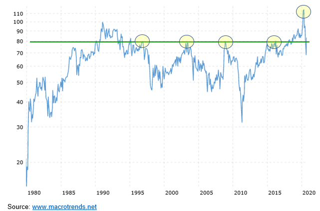 回顾此前的几十年,每当金银比达到80,就会发生逆转。此后,随着该比率的下降,白银的表现通常优于黄金。