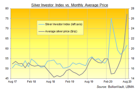 他们专有的白银投资者指数(衡量白银买入与卖出比率)清楚地表明多头依然强劲,并且在获利了结之后的8月继续呈上升趋势。更重要的是,尽管2019年白银总需求较2018年增长0.4%至9.918亿盎司,但投资需求部分却飙升12%至1.861亿盎司。