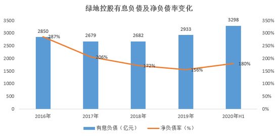 作为试点房企之一的绿地控股,截止今年上半年,有息负债达3298亿元,创近五年的新高,净负债率为180%,超过三道红线规定的100%。