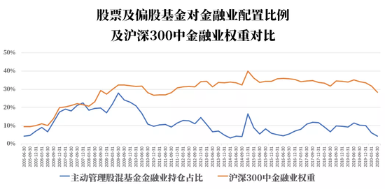 短期考核下,公募基金成为趋势型资金的代表,今年以来偏股基金对银行股持续减仓,6月底金融行业配置比例仅为4.28%,而在沪深300中权重却有28.35%,严重低配。