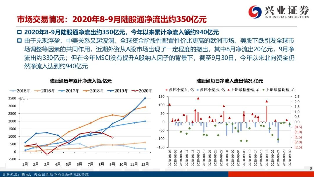 兴证策略表示,由于中美关系又起波澜、全球资金阶段性转移配置、美股下跌引发全球市场回调等因素,导致近期外资从A股市场出现一定程度的撤出,其中8月净流出20亿元、9月净流出330亿元。