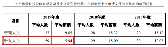 腾景科技给上交所回复的问询函中,为何比最初招股书研发人员的数量少,原因不得而知。
