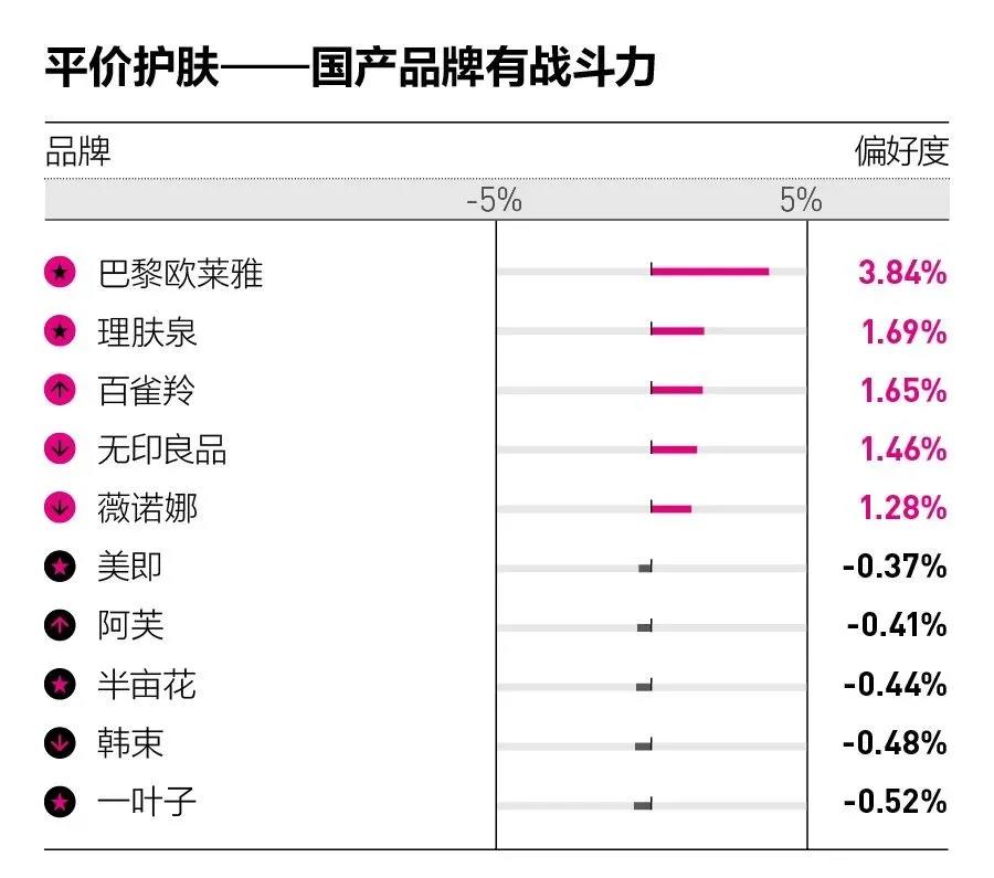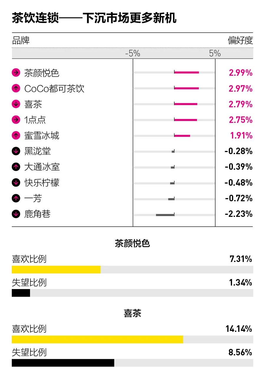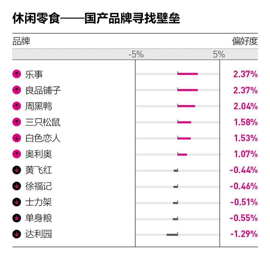 *注:偏好度=(愿意推荐比例-失望比例)×50%;每个品类下有10-40个不等的被调研品牌;
